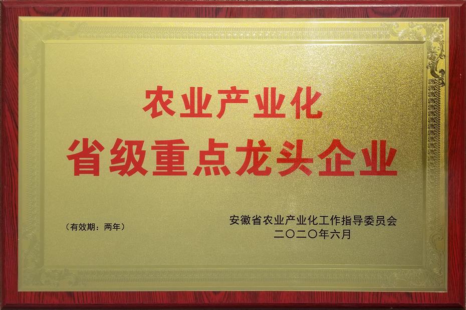 榮獲:安徽省農(nóng)業(yè)產(chǎn)業(yè)化省級龍頭企業(yè)