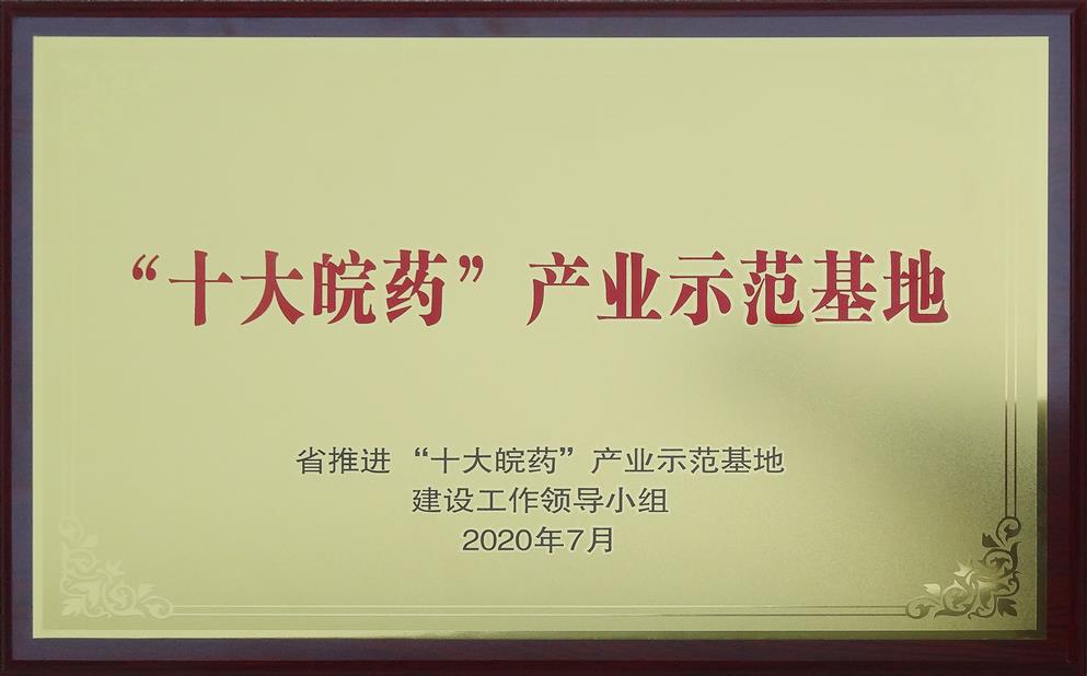 榮獲:“十大皖藥”產(chǎn)業(yè)示范基地