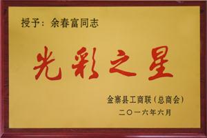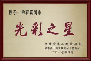 榮獲:授予:余春富同志光彩之星