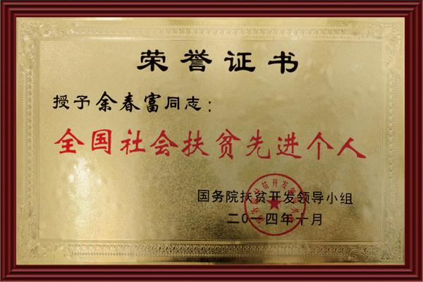 榮獲:董事長獲全國社會扶貧先進個人