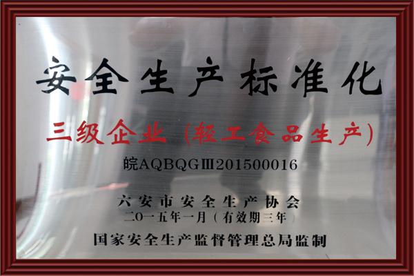 榮獲:安全生產(chǎn)標準化三級企業(yè)
