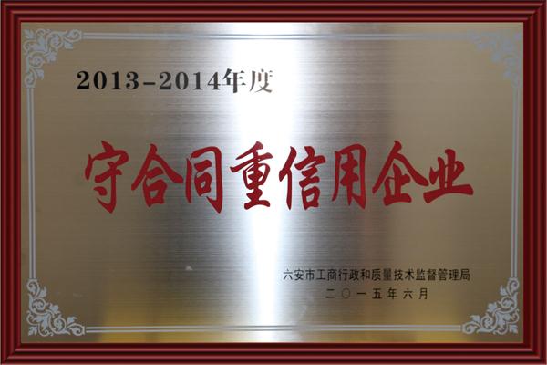 榮獲:2013-2014年度守合同重信用單位
