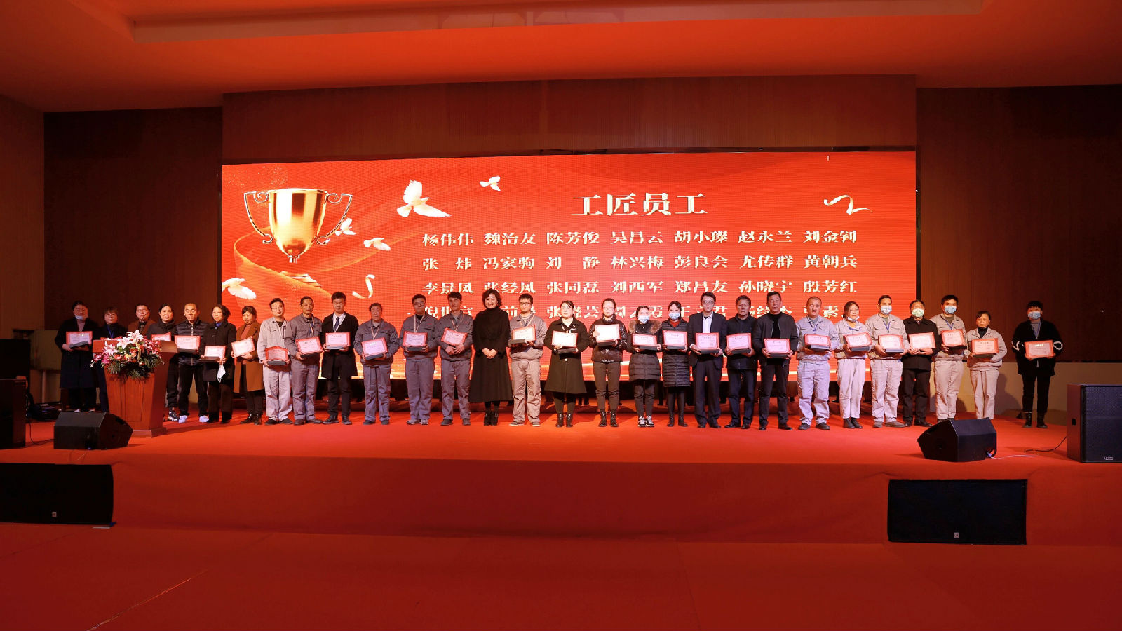 集團總裁趙欣女士為28位“工匠員工”頒發(fā)榮譽證書及獎品