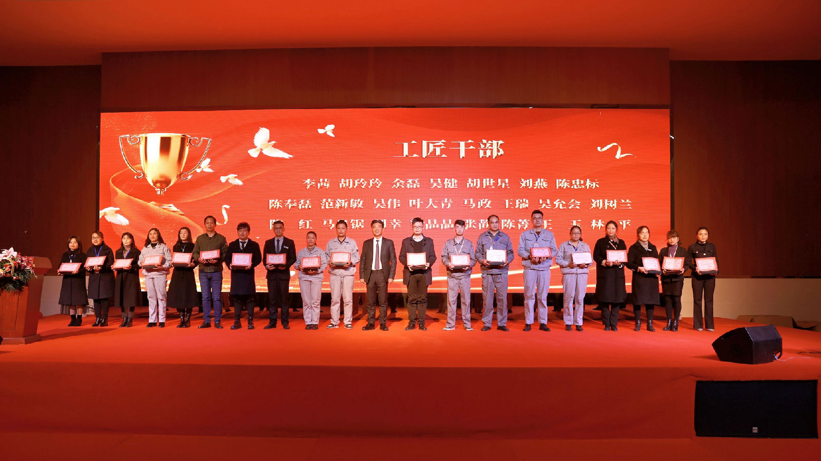 集團董事長余春富為23位“工匠干部”頒發(fā)榮譽證書及獎品